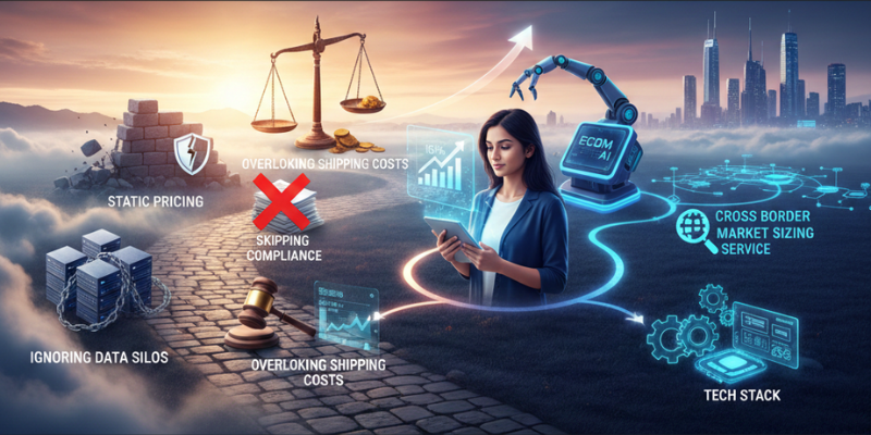 Overlooking calculated shipping costs ecommerce erodes margins. Skipping compliance? Fines galore. Ignoring data silos? No international pricing process.Tools & tech stack for global scaling—like cross border market sizing service—prevent this.