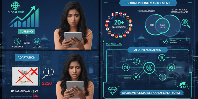 Global pricing management steps in here, orchestrating prices across 20+ countries without chaos. Tools like AI e-commerce market size calculator from cross border market sizing service providers crunch numbers on TAM (Total Addressable Market), SAM (Serviceable Addressable Market), and SOM (Serviceable Obtainable Market). For Priya, this meant realizing the US jewelry e-com market hits $10B annually, but her SOM was just 2% without localization.